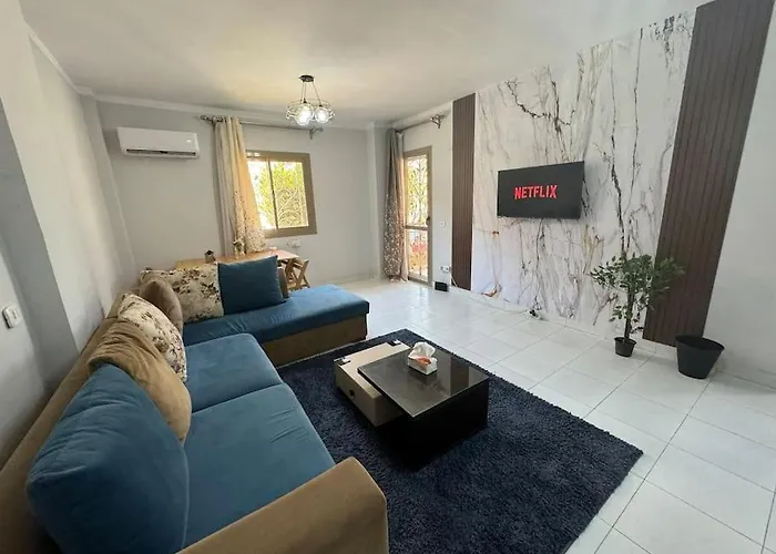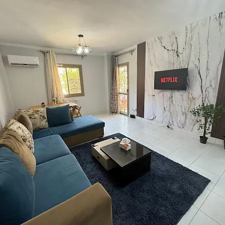 يشتمل خيار الخدمة الذاتية على المطبخ الكامل مع ثلاجة والفرن. تقع الشقة بمساحة 110 مترًا مربعًا على بعد 23 دقائق بالسيارة من مطار القاهرة الدولي.